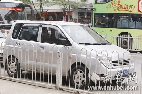 汉口一交警躲楼内拍违章 自己车停禁行车道