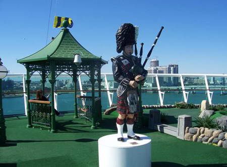 我们的行程一共7晚8天,每人都带了很多行李,本以为码头会非常嘈杂拥挤,但当我们走进登船大厅的时候,却发现办理登船手续的程序非常便捷,所有服务员都面带微笑,无论是服务态度,还是工作经验,所表现出来的素质都让人吃惊。同时有10多个窗口可以办理登船手续,非常安静,几乎不用过多的语言,只要将船票、护照和双币信用卡交给工作人员,剩下的只是稍微等待几分钟,一切就OK了。办完之后每人得到一张船卡,这张卡可以说是一张万能卡,是我在船上的身份证,无论购物、去赌场娱乐还是参加岸上自费项目,只要出示给工作人员,签个字就可以了,非常简便。同时它也是我的房卡,更重要的是在上船下船的时候,只要把卡往机器里一插,持卡人的照片以及个人信息便一目了然。 我一上船,服务员就说可以先上11层吃午饭。我迫不及待地先找到我的房间看看它的样子,房间真是不错,虽然不大但是布置得舒适温馨,还有一个大大的观海圆窗。高兴之余我想起要上楼吃饭,顺便研究一下游轮上的设施。乘电梯到达11层,来到了一个能容纳800人同时用餐的自助餐厅,在4层和5层还有个更大的主餐厅,服务人员会根据客人居住的楼层来分配用餐地点,当然这只是第一天上船时怕客人都选择同一家餐厅吃饭而指定的,其余的这些天随便去哪里吃饭都是可以的。自助餐当然不用说了,自由自在而且餐食丰富,还可以选择露天座位看着海景吹着海风用餐。我乘坐的这条游轮一共有15层,有无窗的内舱,带窗的海景舱、带阳台的阳台房及套房、豪华套房、家庭套房等,各种各样的房间应有尽有,俨然一个五星级的海上大酒店。游轮上的娱乐设施比五星级酒店还要丰富,有剧场、电影院、商业街、画廊、各种风格的酒吧,最刺激的是还有一个赌场。除此之外还有2个游泳池:一个室外的,一个室内的;4个按摩池、美容按摩水疗中心、健身房、室外篮球场、儿童戏水乐园、迷你高尔夫球场、攀岩墙等等。所有这些设施都遍布在船的每个角落,保证你在船上的任何时候都不会无事可作。 游轮上通常要用4种语言播音(英语、西班牙语、法语、意大利语),在船上每个人都是“外地人”,由于船上的标识都非常清楚,所以只要仔细察看都可以找到想要去的地方。当然游轮上有一个正规的问讯处,全天24小时有人在那里等候客人的问讯,为客人解决各种问题。有一天,我去问讯处询问关于岸上的游览项目如何选择,接待小姐是个华人面孔的亚洲人,在几句话交流后,她问我:“您是中国人吗?”我说:“是呀。”她马上用中文说:“我会讲中文!”我当时的兴奋和亲切感觉无法用语言来表达,我终于可以不使用我那蹩脚的英文了!于是使用母语畅快地跟她交谈了起来,原来她是马来西亚人,是这条船上惟一会讲中文的服务人员。当然跟她交谈之后,不仅眼下的问题得到了解决,就连这几天在船上的所有疑问都得到了圆满的解答。 在上船以前,就听人说大型游轮非常平稳,这一点我倒是有深刻的体会,但是船在航行时如此的安静是我没有想到的,就连晚上睡觉时也听不到一点声音,根本感觉不到船在航行。