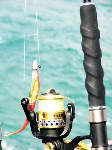 新西兰的海很蓝很蓝,海里的鱼极多,运气稍微好一点,就能钓上一条鱼。这里的鱼饵很好玩,塑料做的,色彩鲜艳,样子像极了真的小鱼,很漂亮,但是味道却很难闻,散发着一股浓郁的腥臭味。“鱼喜欢这个味道。”船员说。他把鱼饵装上,把钓鱼杆递给我。