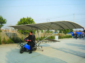 一个普通的退休工人造出一架“山寨飞机”,这事是真的。南京市浦口区盘城街道56岁的退休工人章德东用106天,在自家摩托车的基础上,制造出一架“飞机”。昨天章德东在一条宽敞的马路上进行了试飞,虽然记者没有看到飞机升空,但章德东信心满满:“前几天试飞还飞了七八米高呢,我还会继续试飞并进一步改进。” 一句玩笑话 他造“山寨飞机” 章德东说自己是一家仪表厂的机械师。前两年退休后,有一次朋友聊天,章德东说了句:“我也能造飞机。”随后,他把家里一辆摩托车拆下来进行改造,“一共花了106天。”章德东称,刚开始造时,老伴担心他的安全问题,明确表示反对,但看到章德东的“飞机”有模有样,就不反对了,“不少人退休后打麻将打发时间,我搞这个不比打麻将强?”章德东笑呵呵地说。 真的很山寨 零件来自旧机器,“机翼”还能拆下来 螺旋桨是从鼓风机上卸下来的 主体机身由125摩托车改造而成 机翼宽近8米,由不锈钢管和帆布制成 水平尾翼和垂直尾翼也由钢管和帆布制成 昨天下午两点多,记者在盘城街道永丰村附近的一条马路上见到了章德东和他的“飞机”。 章德东说,自己造“飞机”没怎么花钱,很多零件都是其他机器上拆下来的旧东西。比如,摩托车把手下面的轴承是从碾米机上卸下来的,连接机身的链条是从三轮车上卸下来的,操纵杆则取材于拖拉机,连接机身与机翼的钢架是自己买来的方形不锈钢管,固定钢管的钢丝是从卷扬机上卸下来的。 此外,“飞机”能拆卸。章德东说,“机翼上装了四个螺丝,可以拆下来。等会我可以再把螺丝卸下来,开着机身就可以回家了。” 能飞起来吗 昨天试飞全失败,“场地不好且有风” 在围观者的要求下,章德东决定试飞一把。他坐上座位,发动了摩托车,螺旋桨飞速转动起来,但这架“飞机”刚驶出两三米,右侧的机身便擦到了路边的小树枝,“场地不太好,路不宽,而且长度也不够。” 禁不住众人鼓动,过了一二十分钟,章德东再次试飞,但“飞机”刚驶出四五十米,机身突然往右斜,最后机翼再次擦到了路边的树枝,章德东好不容易才停下飞机,双脚在地上拖了好几米,“乖乖,还是人工制动嘛!”一名围观者打趣道。 章德东称,这两把试飞没成功,主要是因为场地不好且风力较大。“今天机翼兜风不太平均,容易跑偏,最好是无风。” 章德东说,这架“飞机”制成已经六七天了,刚制成时他曾经试飞过一次,当时“飞机”能离地七八米高,飞了好几十米。“今天上午飞机也曾经飞起来过,不过只起来一两米高,很快就落了下来。”一名围观者告诉记者,如果“跑道”能长一些,可能会飞得更高更远。 章德东指着身边一名60岁左右的老汉,老汉叫刘文法,年轻时曾经是江西一家机场的机械师。刘文法指出,位于飞机后端的两个小滑轮需改进,因为飞行器离地达到一定的高度,降落时会产生较大的冲击力,轮子很可能会撞坏。 对此,章德东表示会继续对飞机进行改造。 声音 他还要尝试,专家称不宜提倡 “我花了106天造出这个小飞机,如果下一步试飞成功,我想在机翼上喷上‘106’做纪念。”试飞没有成功,章德东并不气馁。 南京航空航天大学一名专家表示,民间自制飞机的成本太低,飞行安全无从谈起,近年来摔死摔伤者并不罕见,而且个人擅自驾机飞行也会对围观群众构成一定威胁,此类飞行不宜提倡。 另外,我国的航空领域管制十分严格,目前对私人飞行器的升空飞行有严格的标准和审批程序,得到批准后才能起飞,私人制造简单的飞行器进行试飞应予以禁止。 |
