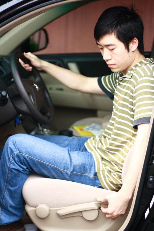 根据自己的身材,保证在右脚把刹车踏板、离合器踏板和油门踩到底的时候,大腿与小腿之间自然弯曲,此时的座椅前后位置是合适的。