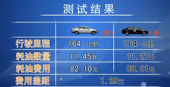此次行程共行驶了164公里,A车耗油数量为11.45升,B车耗油数量为11.27升,A车耗油费用为82.1元,B车耗油费用为80.81元。两车耗油费用相差1.29元。这1块多钱意味着什么呢,假设您每天都需要行驶同样路程,1年以后您就可以省下470.85元约等于65.67升汽油,5年以后您可以省下2354.25元约等于328.35升汽油,10年以后您可以省下4708.5元约等于656.7升汽油,这些钱放在现在可以买来一台笔记本电脑,也可以买来一部ipad,说到这里,想必您心里应该有一本儿明账了吧!