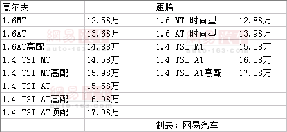 此前曾有热心网友向网易汽车曝料,称第六代高尔夫将于10月底发布,网易汽车同时从该网友处得到了高尔夫6的上市价格。据悉,在高尔夫6上市的同时,速腾的价格也将有一定调整。如下表所示: