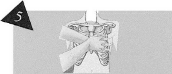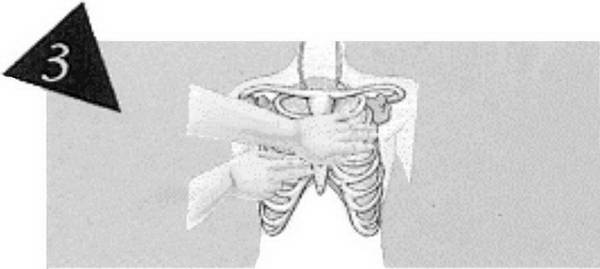 将两手的手指互扣或跷起,以免压迫肋骨造成骨折。