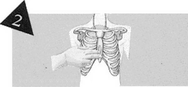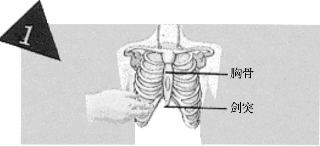 将另一掌的掌根紧靠在已定位的食指旁,使掌根的位置正好放在胸骨的中线上。