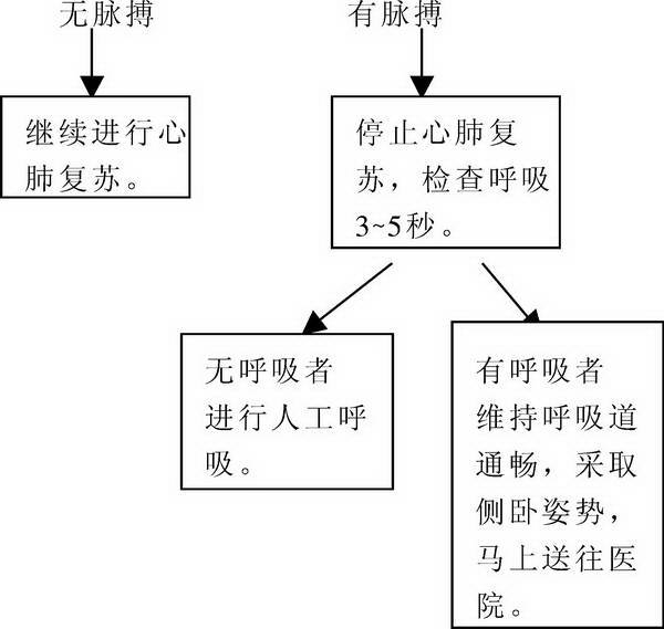 (5)看、听、感有无呼吸。看病人胸部有无起伏,以耳朵贴近病人口鼻,听有无呼吸声,以脸颊感觉有无出气。
