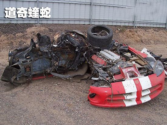 这起车祸发生在美国的亚利桑那州,美国的超级跑车道奇蝰蛇在失控后翻转了几周,最终撞向一个电线杆。
