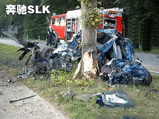 这是一起发生在德国的车祸,车型是一款奔驰跑车SLK。虽然这并非十足意义上的超级跑车,但是平均4.2到5.6万欧元的售价也并非常人能够承担得起的。