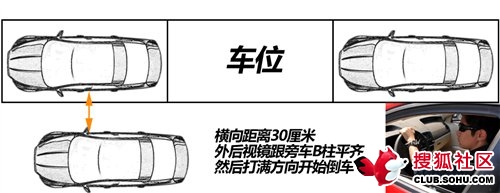 找到车位后,先把车往前开,跟车位前面的车保持平行,同时把距离控制在30厘米左右。30厘米是一个很近的距离,你从驾驶位看过去会觉得两台车就要蹭上了,其实还没有,这就需要多加练习来强化你对距离的感知。