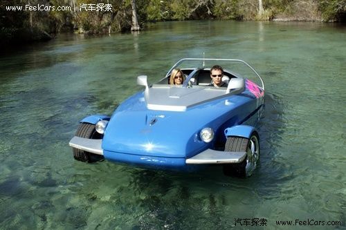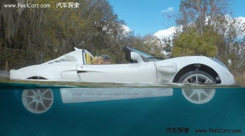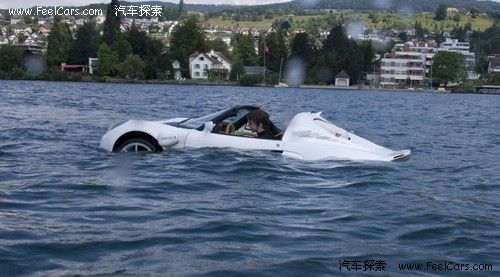 然而如何出色的路面表现都不会成为Squba的重点,只有当下水时你才能感受到它的全部魅力。驾驶接近一吨重的跑车漂浮在水面上绝对是令人难忘的体验。进入水中之后只需按下按钮,Squba就会实现变身。车身前端的进气格栅缓缓打开,使湖水可以进入喷射推进装置。同时六芯电池组将不再驱动后轮。