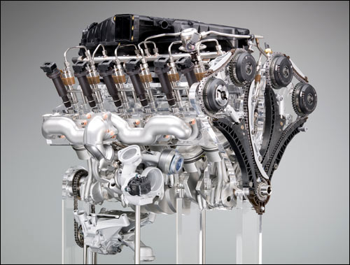 2006年保时捷这种涡轮安装在了997 911 Turbo上,它最大的优势在于发动机低转时可以减小涡轮迟滞现象,使发动机在比较宽泛的转速内都能有很好的动力表现。 三、 宝马:涡轮双响炮 宝马其实很热衷于自然吸气,就像死磕后驱至上一样,但是它还是不得不趋于潮流而走,不但最新7系列使用上了双涡轮增压,连四驱也有了。