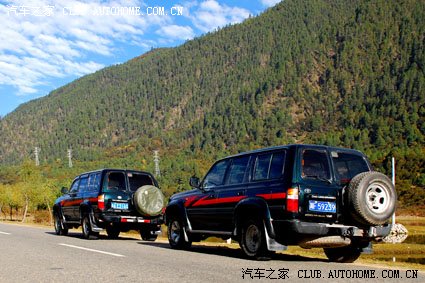 (前面那辆是毛师傅开,我和GG还有木木家俩就坐这辆。后面的是陈师傅开,花花他们4个坐这辆。)一路下来觉得毛师傅真的很好所以上毛师傅的pp 。哈哈~~!1是不是很像藏民啦,其实师傅可是正宗的成都人哦!因为长年在藏区被晒成这样了。我们的旅程正式开始……
