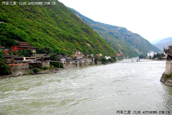 这就是新修的二郎山隧道,以前要从右边的一条小土路走,看了一眼都觉得害怕,真不知道以前的人怎么走的。二郎山隧道全长4.1公里是国内最长的公路隧道。经过隧道后一路的景色和云南很像,于是我就呼呼了!不知过了多久师傅叫醒我们,告之已经到达泸定。我们狂奔到泸定桥上开始乱拍一通(泸定桥门票10元)。