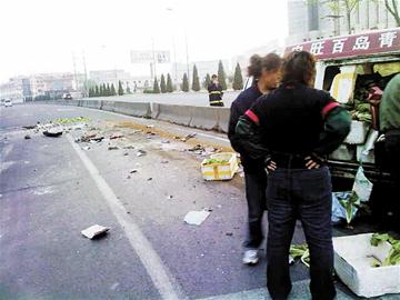 黑龙江路昨晨车祸 大货撞面包车拧成麻花