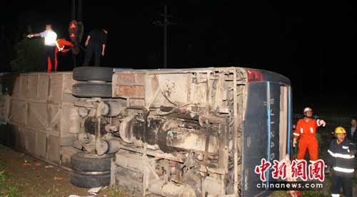 5月31日晚上21时10分许,常台高速G15W109KM+200M处(原乍嘉苏高速公路苏州方向45公里处)发生一起交通事故。据高速交警介绍,该起事故造成8人死亡,7人重伤,29人留院观察。 记者采访了解到,伤者分别被送往嘉兴中医院、嘉兴武警医院、嘉兴第一医院、嘉兴第二医院和嘉兴妇保医院救治。 记者在嘉兴第一医院急诊室了解到,该院收治了10余人,其中重症病房3人,其他为轻伤和一般皮外伤。据参与急救的医生介绍重症病房的病人目前还在抢救中。 在嘉兴第一医院急诊室,记者采访到了与这起事故死伤者同车的王女士。她告诉记者她们一行60余人是山东泰安市人,均是宁波三生公司在泰安地区的经销商。5月27日上午分乘一大一小两部车从山东泰安出发前往宁波参加三生公司的经销商大会。5月31日下午6时许王女士和其他60多名经销商乘坐原车(大车乘坐45人,小车乘坐20余人。)返回山东泰安。当晚8时许在服务区吃完饭后,小车在前大车在后继续上高速行驶在常台高速G15W109KM+200M处(原乍嘉苏高速公路苏州方向45公里处)大车和一辆奥迪A4轿车发生刮擦后,侧翻在路肩外。 |