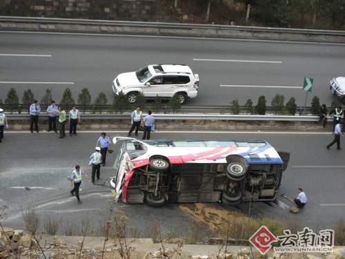 据了解,侧翻的云L18477中型客车是大理交通运输集团公司的,该车核载30人,事发时载客29人,是从下关驶往昆明的。事故原因正在进一步的调查当中。下午5时,封闭了4个多小时的安楚高速公路开始通车。