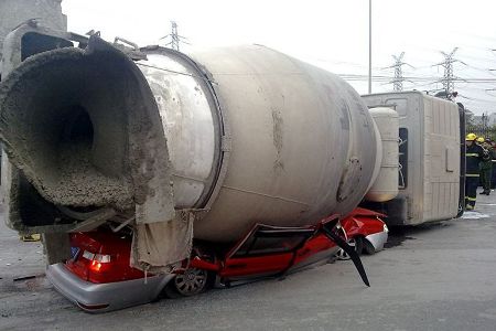上海搅拌车压扁出租车3人惨死 大型车血腥惨剧连续上演