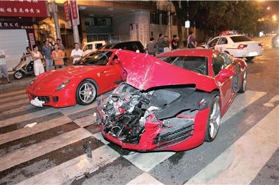 福州市中心法拉利奥迪午夜飙车追尾(图)