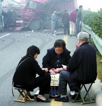 高速路车祸致3死7伤 乘客现场支摊打牌(组图)