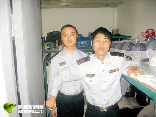 保安刘阳(左)和保安杨林聪在宿舍