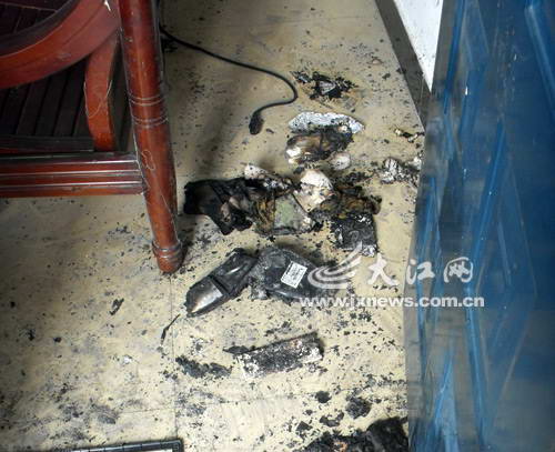 肇事司机孙某纵火后留下一地烧焦的物品