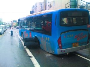 现代快报7月24日报道  “天天坐公交车,还是头一回碰上这种事,这一震,哎哟!”几名乘客揉着腰部说。昨天下午,一辆82路公交车行驶至白下区大光路与御道街路口时,突然“咚”的一声,一“屁股”坐在了马路上。“公交车把车轮都开掉了!”路人看见诧异不已。然而,最可怜的还是一车乘客,被吓得不轻。