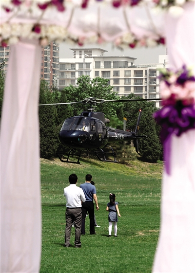 北京首现直升机迎亲业务 1小时收费5万