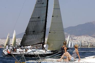 7月16日,游艇上的游客在看一艘参赛帆船启航。当日,为期十天的爱琴海国际帆船拉力赛在雅典拉开帷幕。来自希腊以及意大利和美国等国家和地区的500名帆船爱好者参加。比赛总航程达到450海里,参赛者将于24日返回雅典。 |