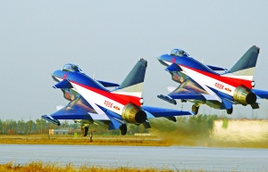 新战机 新涂装 新阵容 新编队 八一飞行表演队 全新亮相珠海航展 2010年珠海航展本月16日开幕,新一届中国空军八一飞行表演队驾驶6架国产歼-10战机5日从驻地起飞出征珠海,他们将以全新装机、全新涂装、全新阵容和全新编队第三次亮相珠海航展,再次展示我空军威武之师的本色。 空军八一飞行表演队歼-10战机将披挂新涂装亮相珠海航展 新战机 新涂装新阵容 换装歼-10后首次公开表演 这是空军八一飞行表演队换装歼-10战机后,首次以新涂装向世人正式亮相。八一飞行表演队,组建于1962年1月25日,其主要任务是对外迎宾和礼仪特技飞行表演。成立近50年来,历经6次大换装,从歼-5时代跨进到歼-10时代。歼-10是我国自主研发的三代战机,具有良好的中低空和亚音速机动性能,飞机机动半径小,具有良好的操纵性和稳定性,中、大迎角特性良好,适合做中、低空高难度特技及编队表演飞行,可充分体现我国航空工业水平和我国空军现代化风貌。空军某师师长严锋自豪地说:“每一位飞行员登上歼-10都会自然而然地产生一种荣誉感,它是咱们国家航空业的一个重要标志。” 据悉,目前在全世界只有俄罗斯勇士、美国雷鸟和我军八一飞行表演队采用了三代机。八一飞行表演队队长曹振自豪地说:“以前二代机想都不敢想的动作,换歼-10后能够轻松地完成,帮助我们大大提升整体实力,缩小了与世界顶尖表演队的差距。” 新涂装 大胆采用宝蓝色调空中亮剑 2009年6月,八一飞行表演队换装歼-10表演机后邀请中央美术学院等单位重新设计涂装。新涂装大胆采用宝蓝为主色调,浅蓝、白色为衬托,象征着空军将士将时刻捍卫祖国的蓝天。涂装标识包括国旗、“中国空军”字样、机徽、飞机号等。从整体造型上看,机身腹部、顶部和两侧分别为抽象的“利剑”图形,垂尾上位飞速闪过的剑光之气,象征着中国空军作为中国军队的主战力量之一,是一把锐不可当的空中利剑,所向披靡。 新阵容 八名王牌飞行员全军无敌 八一飞行表演队进行了重大人事制度改革,告别终身制,从全空军一线战斗部队选拔最优秀的战机飞行员,要求其歼-10的飞行时间至少在200小时以上,同时要求心理素质更加过硬。从技术角度上,作战飞行时战机距离在2公里左右,而编队表演特技飞行时飞机之间的最小距离在1米左右,其难度和危险性提高数倍。空军某师师长严锋,也是这八名王牌飞行员的师傅,他说:“我敢拍着胸脯说,目前全军飞行员都拉出来打模拟对抗,能赢我这8个几乎没有!” 新动作 六机编队打造新绝活动作 经过半年多的严格训练,目前八一飞行表演队的表演主要以六机特技编队为主,穿插四机编队动作和单机特技表演,主要有六机三角队、四机菱形编队、五机开花、四机垂直开花、双机剪刀机动、双机对头和单机特技等动作。 珠海航展时,他们可能会上演空中横滚、倒挂金钟、唯我独尊、魔鬼队形和狭路相逢等空中绝技,一定会使现场观众为之惊叹。 |
