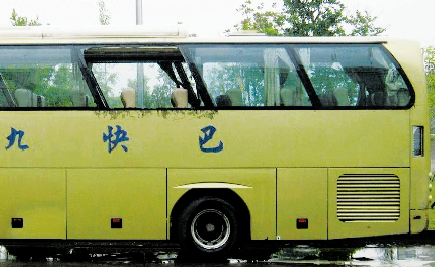 紧接着,又听到“哐”地一声,那块锋利的挡板又击碎了大巴车左侧窗玻璃,飞出了车外。