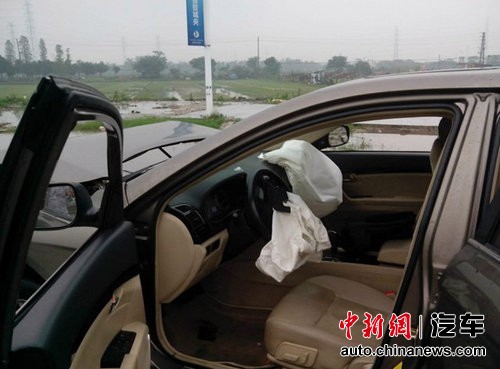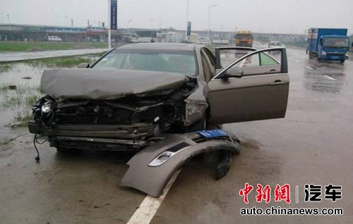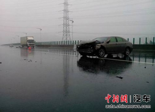 ![]() 逃过一劫的表弟在帝豪车前庆生 据车主本人介绍,当时天气很恶劣,大雨,路面有积水,他们由广州南站入口进入东新高速由南往北行驶赴广州上班。由于时间较紧,车速较快。当行驶至离洛浦出口约2公里路段(该路段属于软基路段,路面起伏不平)时,由于雨势较大,他并没有发现路面有积水,更没有想到积水范围如此之大,于是他没有减速直接向前冲,接踵而来就是车子迅速打滑失控,很快全速撞到了水泥护栏上,气囊迅速打开,发动机盖受撞击后变形翘起以及车内冒起浓浓白烟导致无法看清前方。紧接着是车子快速打转和第二次撞击,他用力顶著方向盘来缓解冲击力。 ![]() 事故现场
