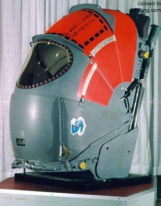 ![]() 2。密闭弹射座椅。该座椅的外形与标准的弹射座椅差别不大,安装在飞机的驾驶舱内。正常飞行时,密闭门是敞开的,飞行员可以正常操纵飞机。应急时,密闭门首先关闭,把飞行员密闭起来。然后再抛掉飞机舱盖。靠火箭推力把座椅推出飞机。密闭座椅进入大气以后,首先稳定减速,接着打开降落伞;飞行员则一直坐在座椅上,安全降落后飞行员才打开密闭门离开座椅。如果在陆上降落,座椅底部的减震气囊起缓冲作用;如果在海上降落,该座椅还备有飘浮气囊,保证座椅能在海上飘浮。这种密闭式座椅只容纳一名飞行员,多座轰炸机要像配备一般座椅那样,给每个乘员各配备一个。这种密闭座椅由美国斯坦利航空公司研制。并用于B-58和×B-70轰炸机上。1963年,美国空军的爱德华·默里乘B-58飞机在6100米上空对这种装置进行了真人试验并获得成功。这种装置虽然能保护飞行员免受高速气流及高空的低压、缺氧和低温的影响而适合于高空高速救生,但它和舱盖带离弹射座椅的方法一样,存在着低空救生性能不足的缺点。据各国飞机弹射救生事故的统计表明。大量的应急弹射救生是在低空进行的,即使在上世纪60年代以来飞机的速度和升限有很大提高的情况下,仍保持着这种趋势。而密闭座椅总的救生性能还不及敞开式弹射座椅,其救生成功率的统计数仅为62%,因而在后来的新飞机设计中未被选用。