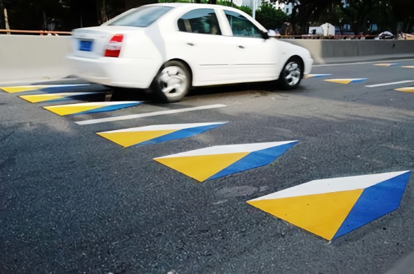 2、彩色三维立体减速标线 与传统的菱形减速标线不同,这种三维立体减速标线就会非常醒目,效果非常好。