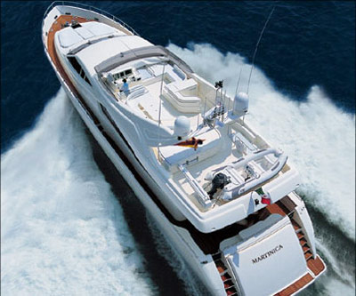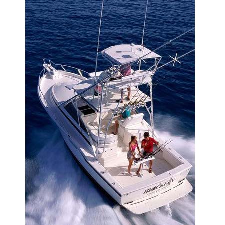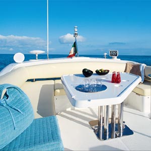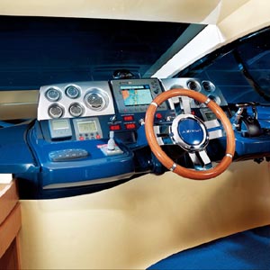 是一条船长46英尺的中型游艇,叫君悦号。驾驶座在游艇的顶层甲板上,是半露天的。