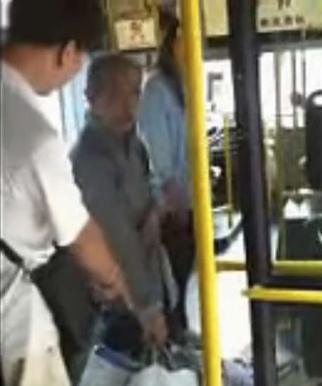约过了1分钟后,劝说无果的女司机回到驾驶座上发动车子,男乘客依旧和老人在言语上相互对峙着。最终,当车子在某站停靠时,白衣男子索性直接趁着开车门之际,将老人的几袋物品扔了下去。