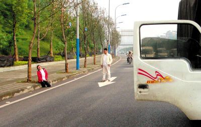 女子在马路边大哭 本组图片记者 郑三波 摄