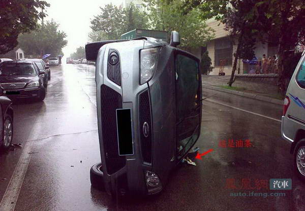 昨天早上在家睡觉,老婆自己开车出去买早餐,睡梦中接起电话,老婆哭着说车开翻了,第一时间想到"娃没了",老婆已经怀孕5个月了,这下车翻了肯定完了。迅速向事发地跑,当时还下着雨,到了现场一看惊了,车立在那了。还好老婆没事,只是皮外伤,肚子也不痛,孩子没事!
