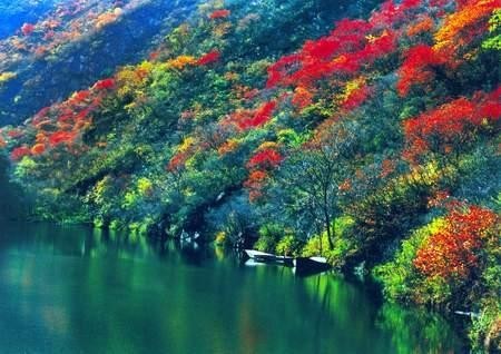 双龙峡的美是公认的,不过比起夏日戏水时节的热闹,秋日里的双龙峡更有一番与众不同的韵味。漫山遍野的红叶为湖光山色的双龙峡增添了几分妩媚,火红、金黄的树影倒映在清幽的湖水中,既热情又宁静。荡开层层涟漪泛舟前行,两岸层林尽染的好山景让人大饱眼福。在靠近岸边处不妨停下桨来任其漂流,倚在小船上专注于两岸的美景,别有一番感受。当然,双龙峡的招牌小火车也是不容错过的,峭壁、断崖,迷你版的橘红色小火车总是能进入很多徒步无法到达的美景中。