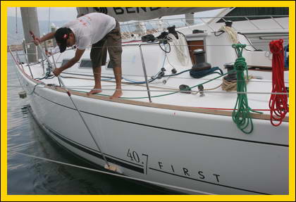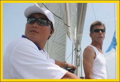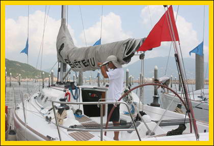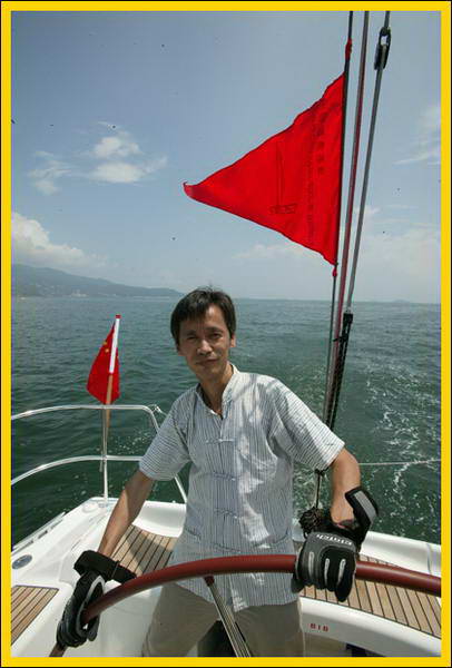 渔夫从法国买来的帆船赛统一组别用船First40.7一抵深圳,兽医不失时机地登船感受一番。“这船好开吗?”对于一个胸怀全世界、手扶拖拉机的兽医,这位老兄居然问出这样的外行话,令人感动。