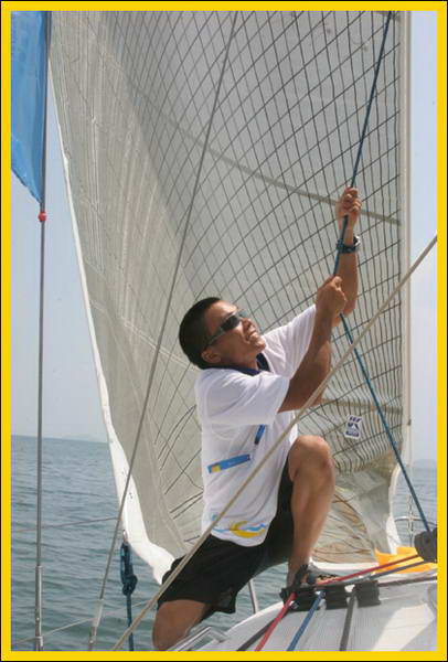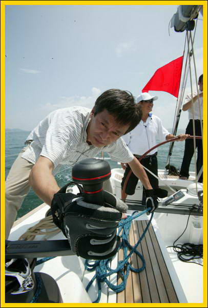 “中国杯” 帆船赛指定赛船博纳多First40.7兽医遇到兵,有理说不清。演员邵兵海上作乐。